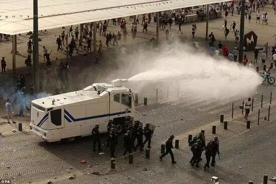 法国警方更是出动了大批警力,使用催泪弹、高压水枪才将局面控制住。。